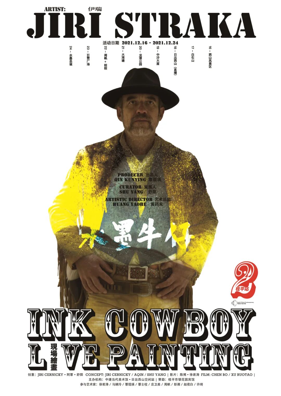 直播预告 | 《水墨牛仔》东游记第二回:桂平站伊瑞《水墨牛仔》现场绘画展览第二站,将于12月16日—24日,在桂平亮相,届时多名艺术家也将一同参展。在现场将看到伊瑞身穿西部牛仔服,现身“日出西山”国际空间美术馆,并骑马入场,进行现场水墨绘画。 《水墨牛仔》桂平站行程 12月16日-西山风景区 12月17日-白石山 12月18日-“日出西山”国际空间美术馆 12月19日-中沙大屋 12月20日-龙潭公园 12月21日-大湾镇 12月22日-周帆+姣姣 12月23日-巨赞广场 12月24日-水墨圣诞 什么是水墨牛仔?听起来很荒诞,很奇怪,从来没有见过这样的组合,是新的名词?是牛仔披着水墨画?他会是什么样的形象?不用去考虑这些,这次我们一起玩! 《水墨牛仔》北京展照《水墨牛仔》桂平西山站将会在视频号平台进行全程直播 直播时间: 12月18日(周六)14:00 直播地点: [p]广西桂平市西山风景区思灵湖畔[/p][p](日出西山国际空间美术馆)直播预约: [p]中捷当代美术馆 更有趣更好玩的展览 将“水墨”与“牛仔”结合立即预约直播!好玩就够了!现场绘画:水墨牛仔 艺术家:伊瑞 ( Jiri Straka) 出品人:覃琨瑛 策展人:舒阳 艺术总监:黄药禾 创意:Jiri Cernicky | 阿覃 | 舒阳 参与艺术家:徐若涛 | 马嬿泠 | 覃琨瑛 | 覃士柱 | 庄卫美 | 周帆 | 彭湘 | 赵夜白 | 许琦 三才艺术 | 梁家艺 主办机构: 中捷当代美术馆 CCC 日出西山空间站 鸣谢: 桂平市银花园宾馆 BREAK AWAY 《水墨牛仔》即将亮相宇宙之眼 《水墨牛仔》东游记第一回策马登陆 《水墨牛仔》| 子在川上「约」 |