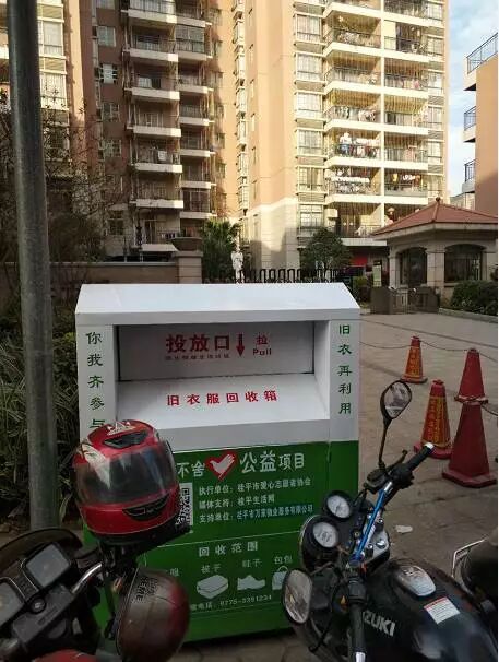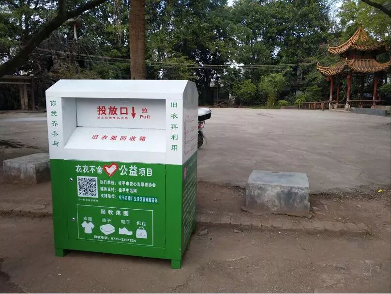2017年12月26日下午,桂平市爱心志愿者协会将旧衣物回收箱陆续投放到各街道、社区,为我市的市民在环保公益上提供了一个更贴心的服务,“旧衣再利用,你我齐参与”希望大家献出自己的一份爱心。目前回收箱仅投放到部份小区\社区,请大家按公布的地址就近进行捐赠。