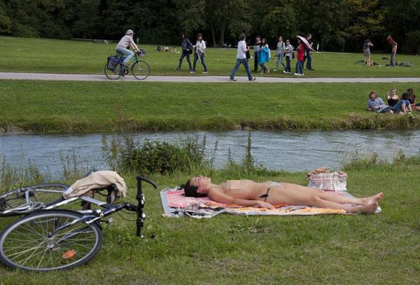 7. 大都市中的裸体公园——英国花园(德国慕尼黑) 慕尼黑与中央公园地位对等的英国花园(Englischer Garten)到处是赤身裸体的人。随着裸体在德国变得平常化,这座城市已经指定全城6个裸体区域,使裸体官方化了。所以你在法律眼中是没有任何问题的,只不过在那些盯着你看的人眼里不尽然。不管怎样,你一定不能错过冰流(Eisbach),这是一条两岸草地绿油油的河,也是一个裸体主义者享受日光浴的黄金地点,更是一年四季内陆玩冲浪的绝佳地点。