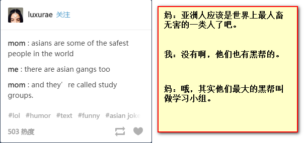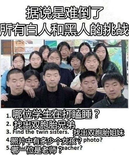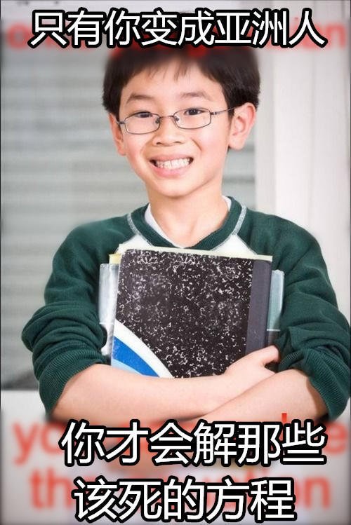1.学习成绩好 这哪是黑啊,检测到一股浓浓的发酸的嫉妒缓缓飘来.... ![]() 看来妈妈上学时也是一个有故事的人。成绩排名应该是被一个叫做学习小组的亚洲黑帮挤出了50名开外 ![]() 对于黑人来说,不认识的白人都叫蛋黄酱,而不认识的亚洲人,恐怕只能叫他计算器了 “计算器”感觉比“蛋黄酱”稍微好一点,你说呢 ![]() 你们没做过三年中考两年模拟,五年高考三年模拟,不知道王后雄是谁,怎么会解方程嘛 ![]() 白人们做事是有多不走心啊! 2.眼睛小